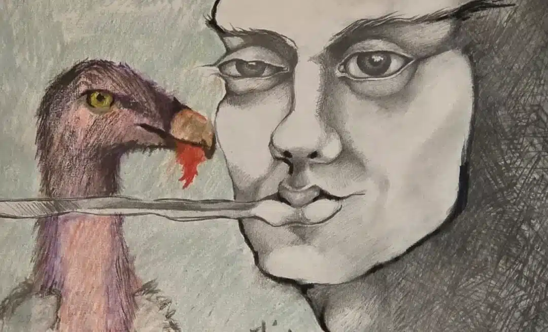 Desde otro plano, observa como los buitres descuartizan su cadáver. Ahora sabe que hay una consciencia común entre los pájaros.